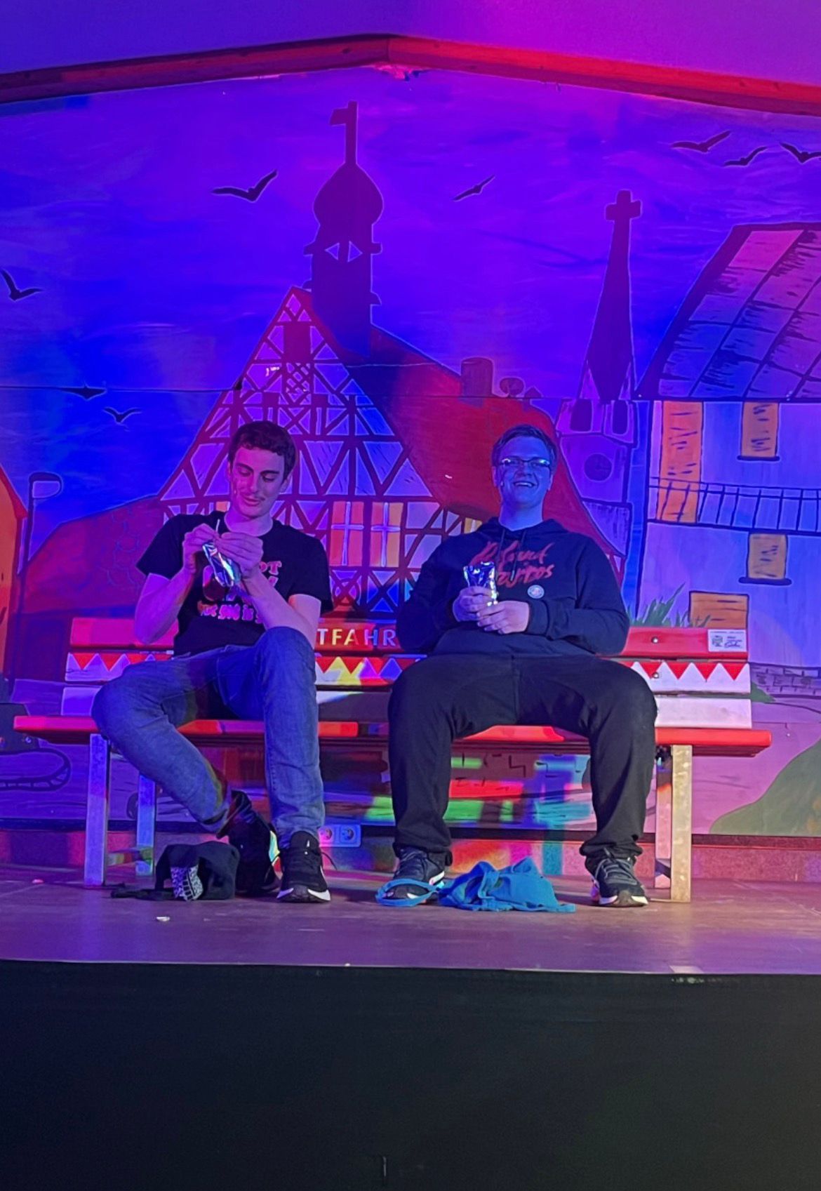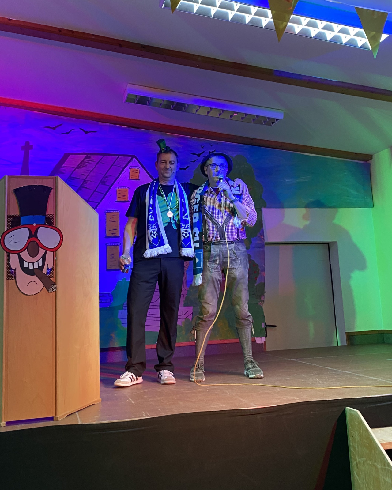 Für weitere Lacher sorgten die „Bänkle‑Hocker“ Laurens, Patrick und Luis Vogel. Ihr Sketch über kreative Wege, ungestört einen zu heben, ohne dass die Dorfpolizei etwas merkt, wurde mit tosendem Applaus belohnt und war ein starkes Debüt auf der SVB‑Bühne.