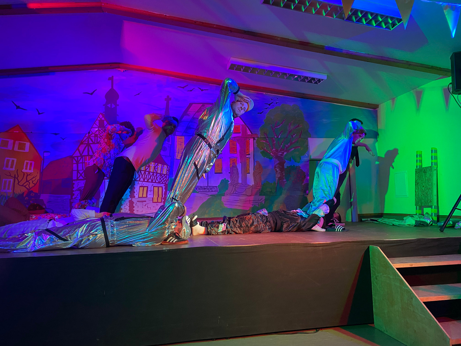 Das Männerballett aus Welbhausen setzte anschließend noch einen drauf: Mit einer temporeichen Show zu Hits aus den 60ern bis 2000ern füllten sie die Bühne mit Tanz, Akrobatik und Humor. Die Höhe der SVB‑Halle wurde dabei erneut auf die Probe gestellt – und so mancher Zuschauer wurde allein beim Zuschauen schwindelig.